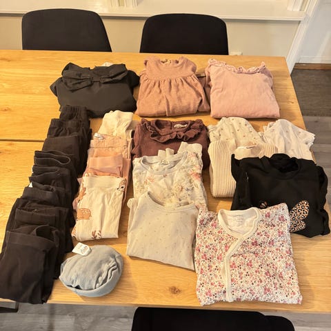 Selger klespakke med merker som newbie, Lil atelier, nameit, kapphal. Noe av tøyet har flekker som jeg ikke har prøvd å få bort (se bilder) og noe er lite brukt.
