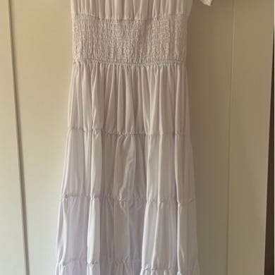 Selger en lilla kjole i anime cosplay-stil. Kjolen er merket str. L, men tilsvarer ca. str. M i passform.
