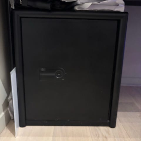 D60 brann- og verdisafe med kombinasjonslås. Safe i metall med hvit/beige farge. Egnet for sikring av verdisaker og dokumenter.