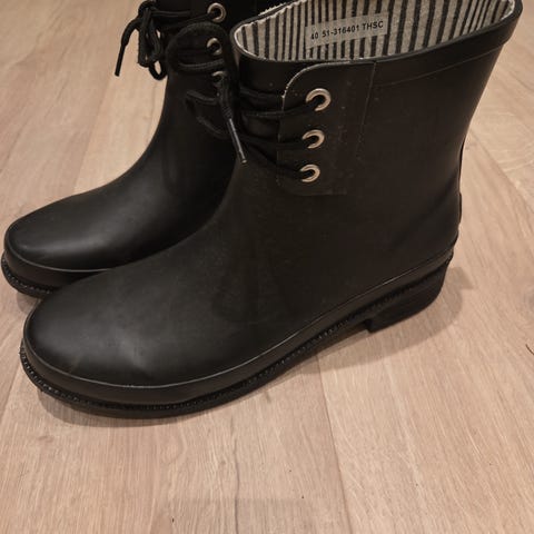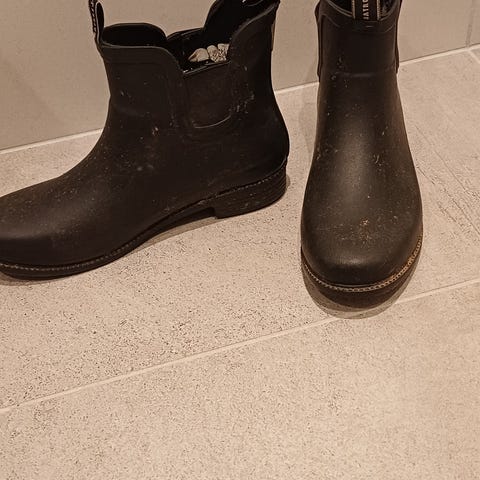 Gummi-støvler, brukt 2 ganger str.38-39 selges grunnet hofteskade. HENTES.