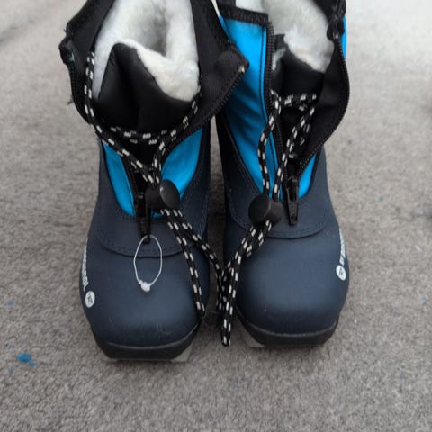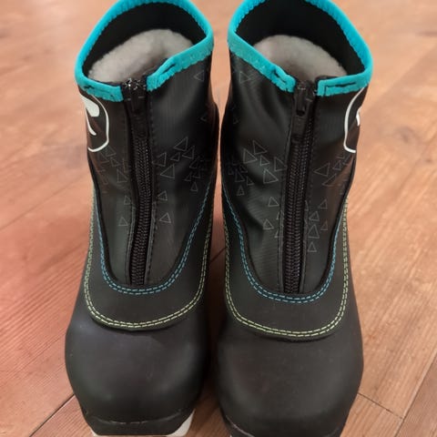 Gode og varme skisko fra Rossignol i str 33. De har et tykt isolerende for, og er høye i skaftet slik at det ikke så lett kommer snø inn i skoen.