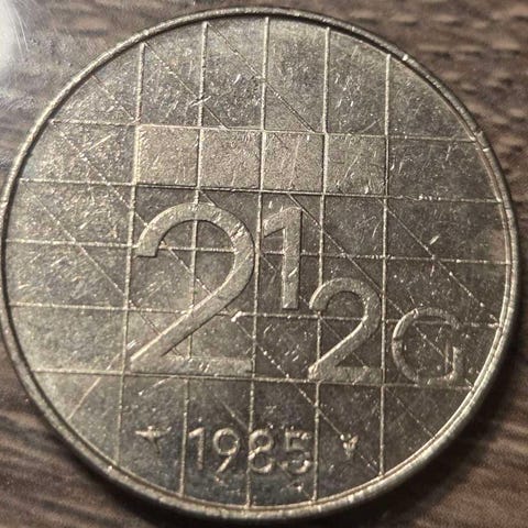 Nederland 1 Gulden mynt fra 1970 med bilde av dronning Juliana på den ene siden og riksvåpenet på den andre siden.