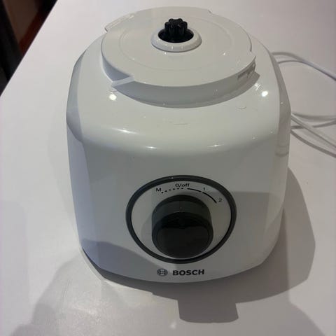 Bosch MCM4200 foodprosessor med mye tilbehør inkludert blender, sitruspresse, og ulike kniver og skjæreskiver. Vi har kun brukt blenderne, mens resten av utstyret er ubrukt. Selges fordi vi har kjøpt større kjøkkenmaskin.