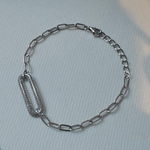 Lekkert armbånd i sølv med store ledd innsatt med klare stener. Merket 925 (sterling sølv) og mesterstempelet til Sigurd Homstvedt.