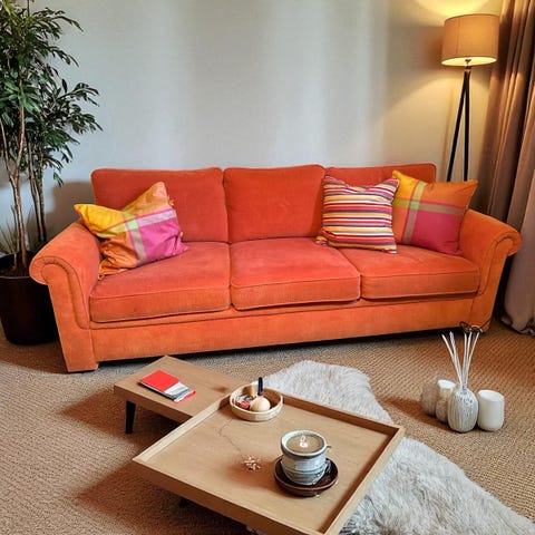 Sofaen er pent brukt. Trekket kan tas av og vaskes/strykes.