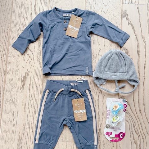 En liten klespakke i ull til nyfødte, strl 56.