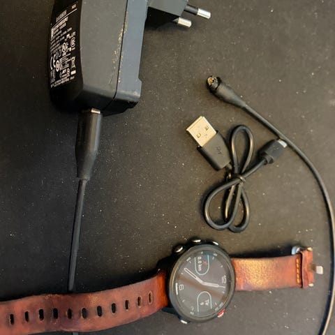 Tilstand og batteri: Klokken er mellom 5–7 år gammel, men har blitt godt ivaretatt og fungerer akkurat som den skal. Batteritiden har holdt seg overraskende godt; den merkes kun å ha gått ned med ca. én dag sammenlignet med da den var ny, så her har du fortsatt mange dager med bruk mellom hver lading.