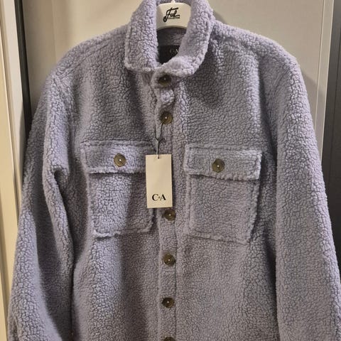 Jakke fra HM i str M. Den er oversize. Lukkes med knapper i samme farge som jakken. Foret.