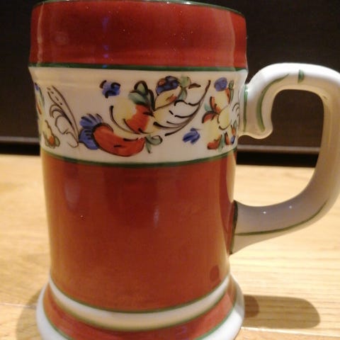 Stor kobberkjele med original patina. Kjøpt i antikvitetsbutikk på 60-tallet. Antatt datering ca 1850. Stått til pynt, og ikke brukt.