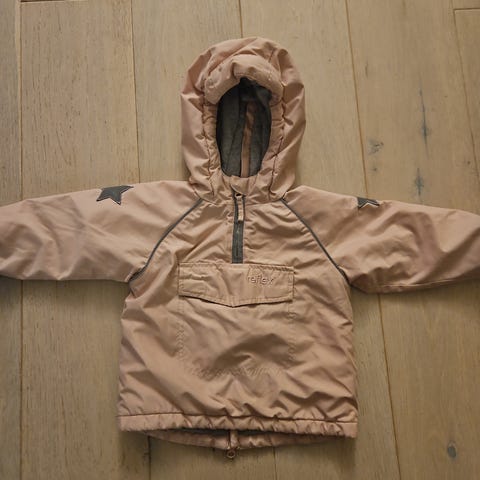MINI A TURE jakke i størrelse 68 for jente, laget av polyester. Jakken har hette og er rosa i fargen. Den har ribbestrikkede mansjetter og glidelås på ryggen