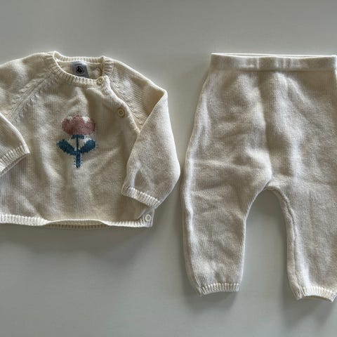 Nydelig heldress/pysj i ull/bomull fra Petit Bateau. En liten flekk bak (se siste bilde), ellers ingen bruksmerker som jeg kan se. Litt smal/liten i str., merker den derfor som 68. Kan muligens brukes fra str. 62.