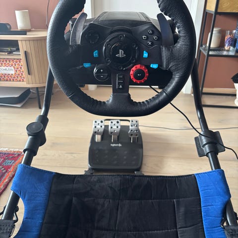 Logitech ratt + pedaler med sammenleggbar racingrigg – svært god stand
