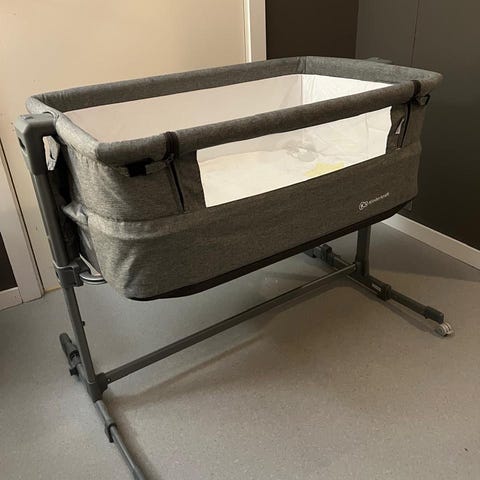 Merk: Kabelen/stroppen for å feste den til sengen mangler, men sprinkelsengen fungerer fortsatt perfekt.