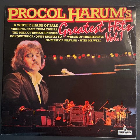 Procol Harum Greatest Hits Vol. 1 LP vinylplate utgitt av Pickwick Records. Inneholder en samling av bandets mest kjente sanger. Utgitt 1978.