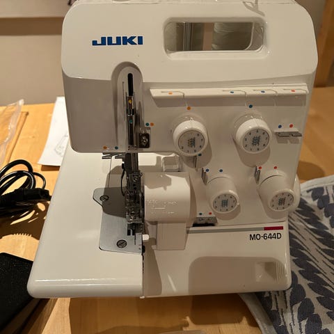 Leveres med tilbehør som noen nåler, litt tråd, fotpedal og bruksanvisning på CD.