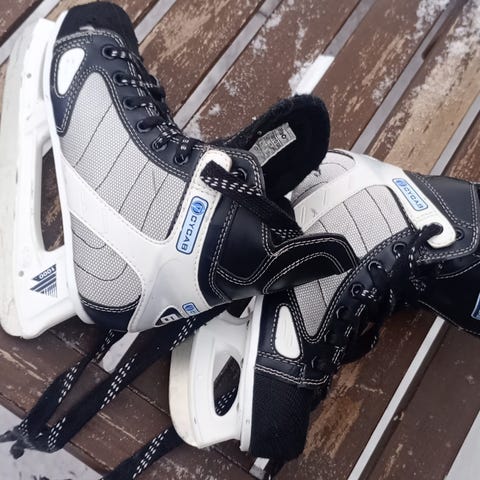 Står ikke noe størrelse på skøyter, men disse blir brukt av våres gutt som hadde størrelse 34 ifjor.