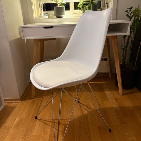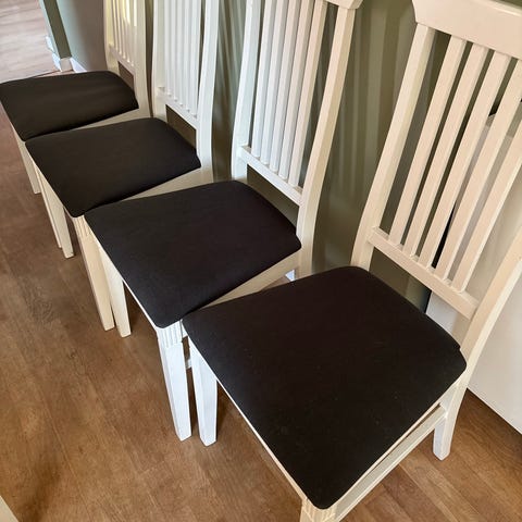 4 stoler av ukjent alder/merke selges. De har litt bruksmerker og hadde nok hatt godt av en rens av stoffet, men ellers er de i fin stand