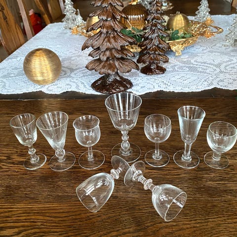 12 stk. små gamle glass. Trolig «Arvid» fra Hadeland Glassverk. I fin stand.