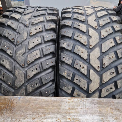 Helt ok komplett sett piggdekk til traktor. Mangler noen pigger men mye dekk igjen.