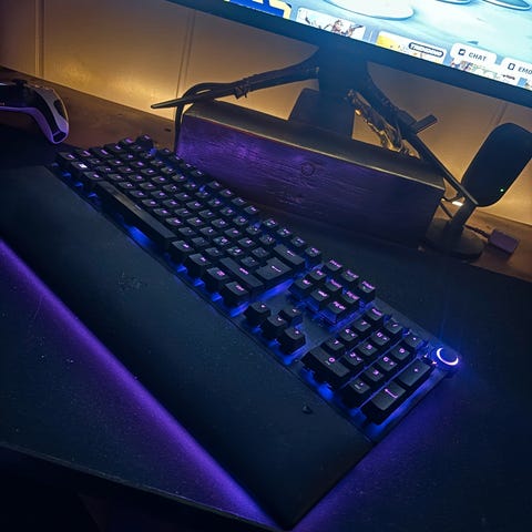 Første mann til mølla!!Gis bort , brukt gamingstol . Den er slitt på stolputen, men er fortsatt en fungerende stol , led lysende fungerer og det er med kontroll til lysene.