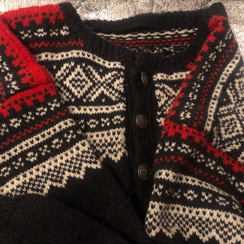 Ny håndstrikket genser, lue og pannebånd str. M i luksusgarnet Alpaca bris fra Viking garn. Garnet er varmt, lett og kløfritt og gir svært behagelige plagg. Genseren er strikket etter mønsteret "Farfar genser". Det er en unisex genser som er fin til begge kjønn.