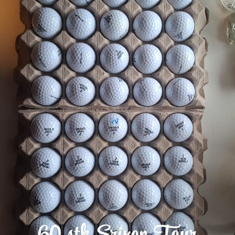 Pakke med 31 golfballer i hvit og gul farge. Tusjmerker/logoer på noen av ballene(se bilde)