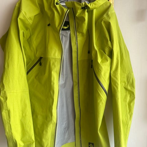 Jakke fra Haglöfs som er varmt fôret i dun med vanntett overflate. Jakken har hette med justerbar snøring, og elastisk erme- og nederkant. To sidelommer og en brystlomme som lukkes med glidelås.
