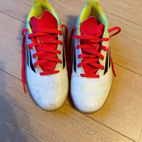 Kule Adidas F50 League IN futsal fotballsko for junior i størrelse 38 selges. Skoene er brukt 2 ganger og har ingen merker etter bruk unntatt sålen som er litt farget av banen (ikke slitt). Nypris: ca 780 kr.