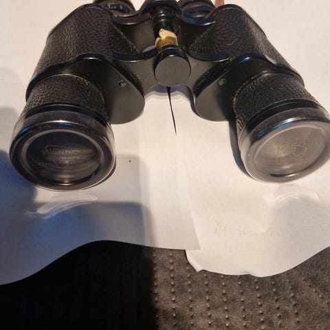 Vintage tyske kikkerter LIMET 12x50 Field 5.5°. Klassiske midt-1900-talls kikkert med «Triple Tested» og coated optikk. Solid metallkonstruksjon med sort finish og originale objektivdeksler merket «GLANZ». Leveres med original brun skinnveske og bærestropp. Normal aldersrelatert slitasje utvendig. Optikken har noe støv og lette merker, men ingen åpenbar sopp. Fokus og justering fungerer. Selges som vist på bilder.