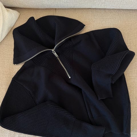 Super fin strikk med høy hals. Kule farger og sitter supert på