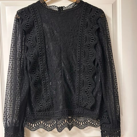 Sort pen bluse med rose dekor.