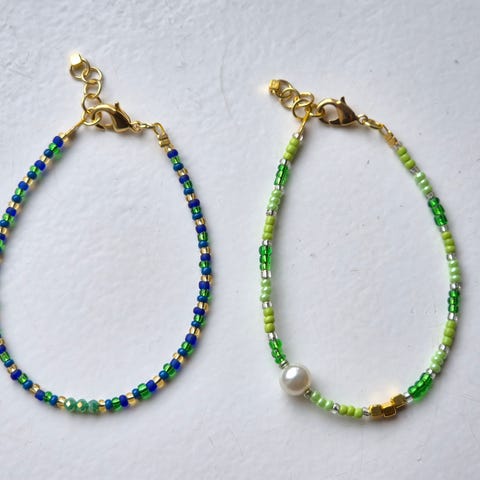 Søkeord: armbånd, rocailles, rocaillesperler, seed beads, glassperler, smykkesett, perler, perlearmbånd