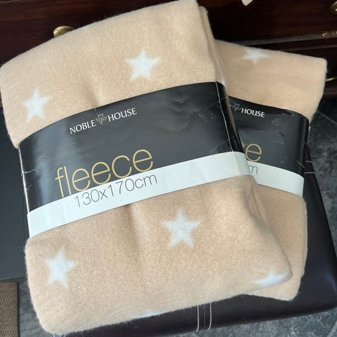 Rosa pelspledd - ubrukt og som ny, men usikkert hvor fra