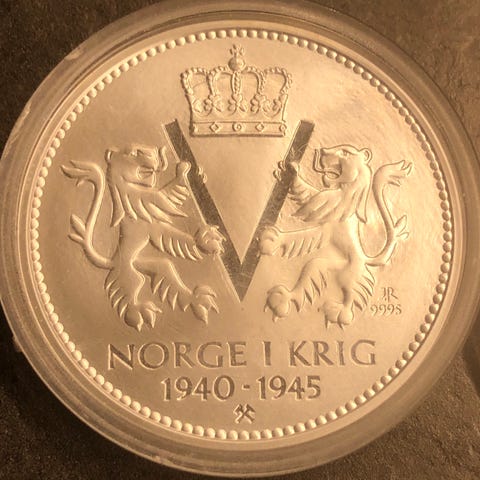 Norge i Krig Komplett stort sett sølvinnhold 99,99% mynter