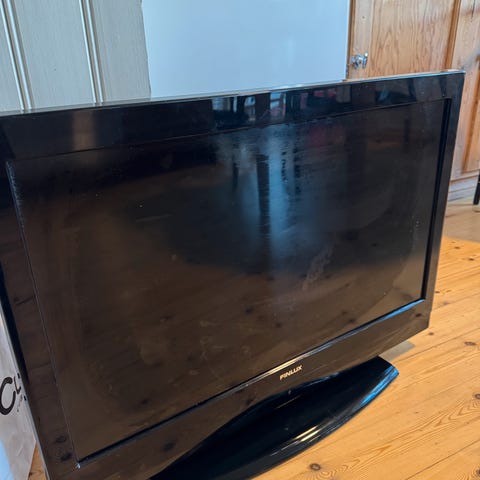 Gammel men velfungerende tv til salgs. Har dessverre ikke bein til tv. Fjernkontrollen har teipet batteri lokket. Følger med ny strømkabel