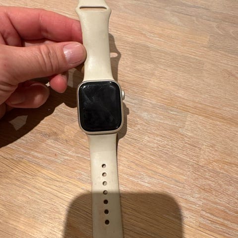 Apple Watch Series 7 smartklokke med GPS og mobiltilkobling. Klokken har et aluminiumsdeksel og kommer i svart farge. Inkluderer ekstra remmer. Pent brukt. Veldig god stand. Ladekabel følger med.