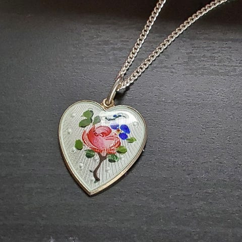 Emalje og sølv hjerte med Fader Vår, Anheng