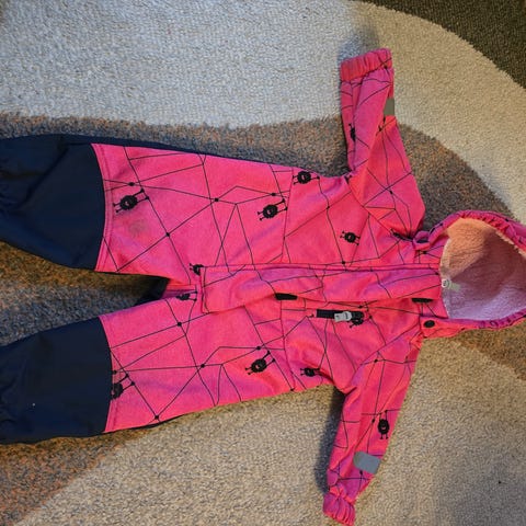 Søt, rosa softshelldress fra Reflex. Dressen er kjøpt ny av meg, har ingen merker eller skader, og fremstår som ny. Tok av strikkene, men finner dem ikke igjen, så den selges uten strikker. Har gått helt fint å bruke også uten strikker.