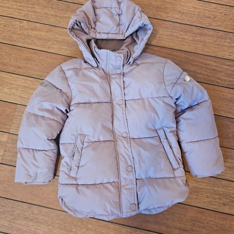 Jakken oppleves ikke varm, men beskytter mot vind. Hetten kan tas av med knapper.
