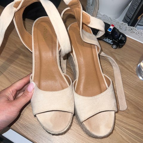 Lekre slingbacks med kitty heel og dekorativ spenne.