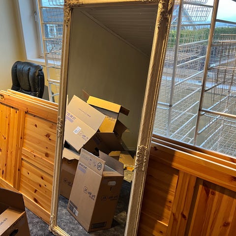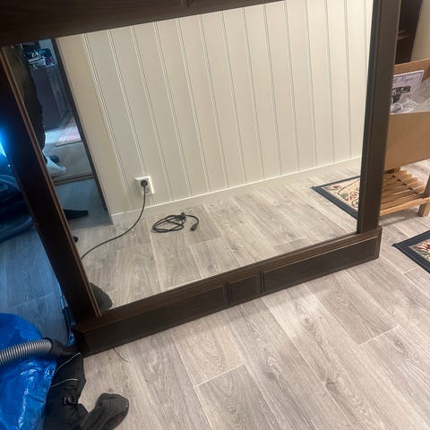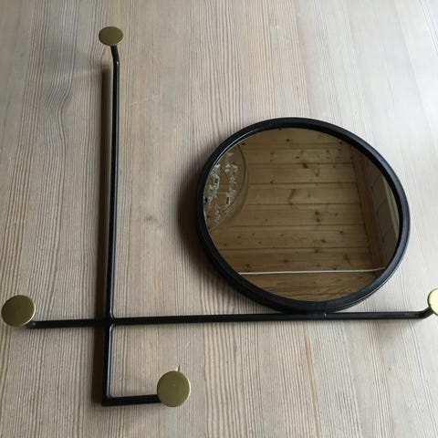 Et solid, kvadratisk speil med sølvfarget metall ramme.