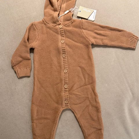 Reflex heldress i størrelse 80. Dressen har glidelås foran og ribbestrikkede mansjetter ved ermer og ben.