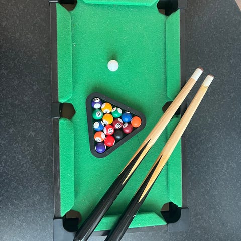 Mini biljardbord med kø og kuler