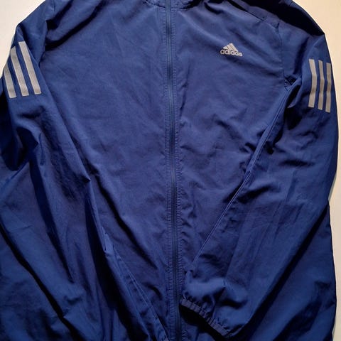 Adidas Løpejakke for herre i størrelse L. Jakken er oransje og laget med ClimaProof-teknologi som gir beskyttelse mot værforhold under løping. Lite og pent brukt.