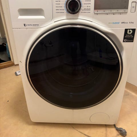 Samsung Frontmatet vaskemaskin. Fungerer godt. Pakningen er litt ødelagt så kan dryppe litt vann noen ganger men fungerer helt fint ellers.