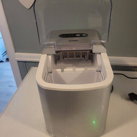 Jeg selger en Clas Ohlson ismaskin til drikke. Maskinen fungerer bra og ser kosmetisk bra ut. Den produserer is normalt, men etter transport og lang tids avstengning må den stå på i omtrent en time før den går tilbake til normal drift. Selges fordi jeg ikke bruker den.