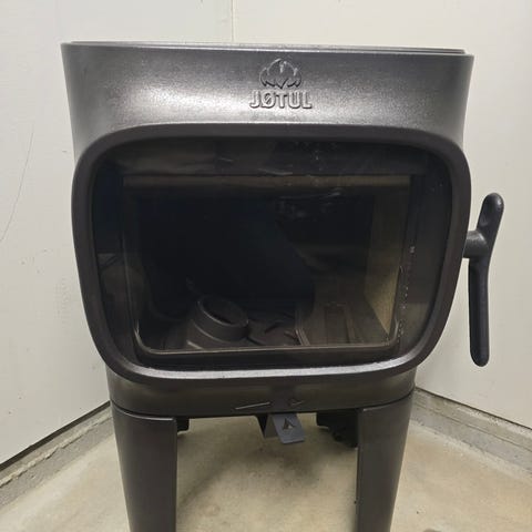 Selger en pent brukt Jøtul F 371 High Top Advance peisovn i støpejern, med stor glassdør og høy sokkel. Klassisk og tidløs solid ovn som varmer godt i stue/hytte.