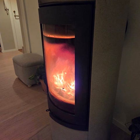 • Stor glassdør for god utsikt til flammene