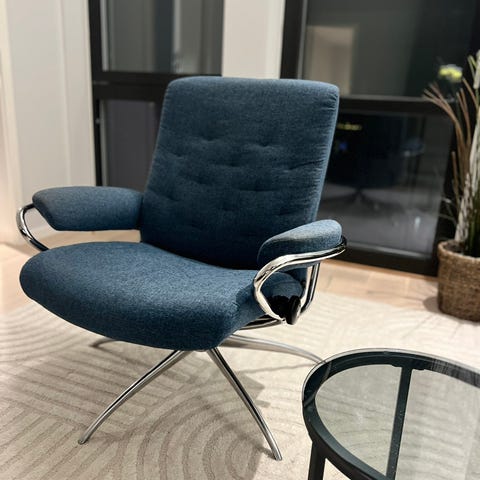 Selges da jeg ikke får plass til den i ny leilighet. Veldig god stol å sitte i.