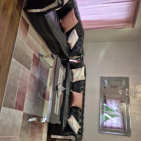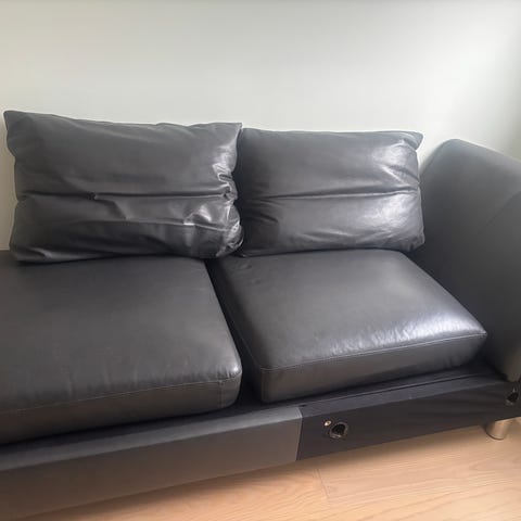 Pen stand. Sofa med recline funksjon - ingen fotskammel, men rygg kan lenes bakover.